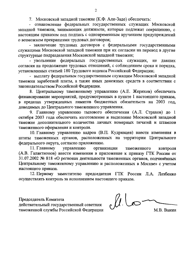ПРИКАЗ ГТК РФ от 02.10.2003 N 1097