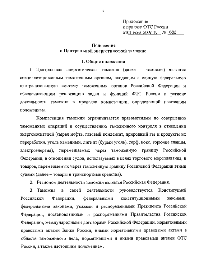 ПРИКАЗ ФТС РФ от 01.06.2007 N 683