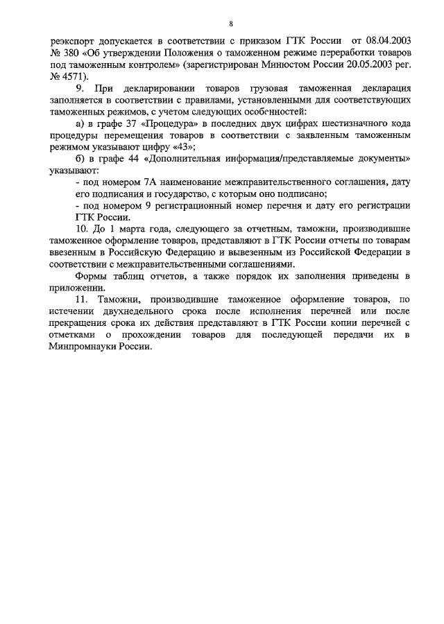 ПРИКАЗ ГТК РФ от 08.09.2003 N 999