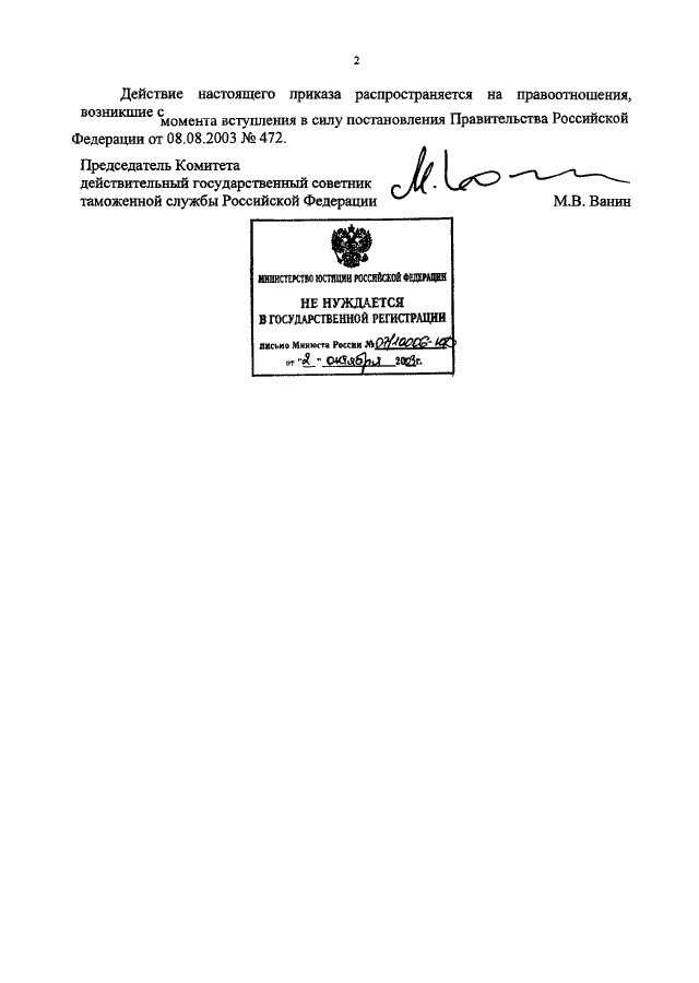 ПРИКАЗ ГТК РФ от 18.09.2003 N 1036