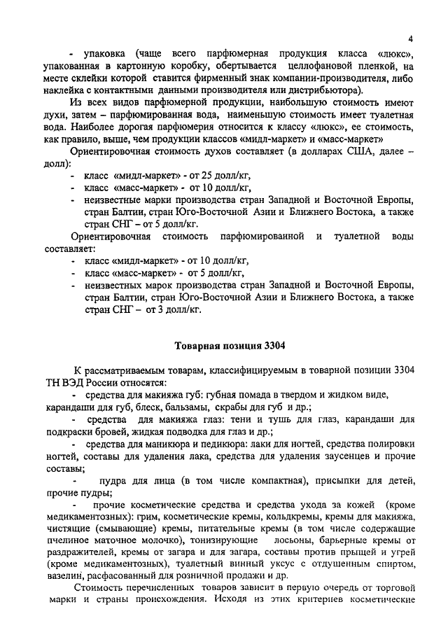 "О КОНТРОЛЕ ТАМОЖЕННОЙ СТОИМОСТИ ОТДЕЛЬНЫХ ТОВАРОВ, КЛАССИФИЦИРУЕМЫХ В ТОВАРНЫХ ПОЗИЦИЯХ 3303, 3304, 3305, 3306, 3307 ТН ВЭД РОССИИ"