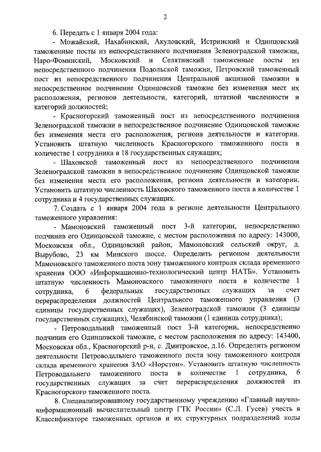 ПРИКАЗ ГТК РФ от 27.10.2003 N 1196
