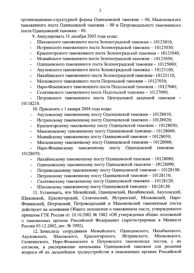 ПРИКАЗ ГТК РФ от 27.10.2003 N 1196