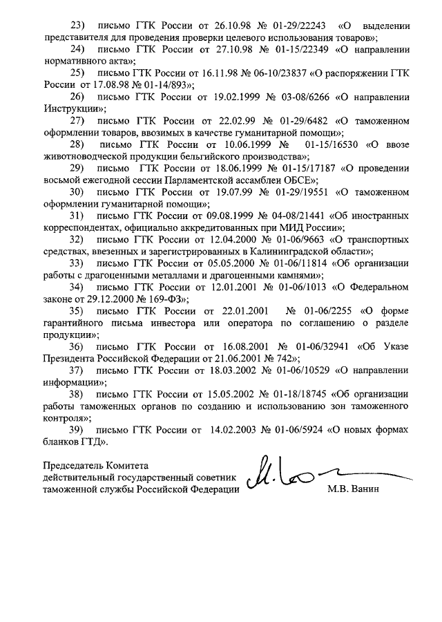 ПРИКАЗ ГТК РФ от 12.11.2003 N 1269