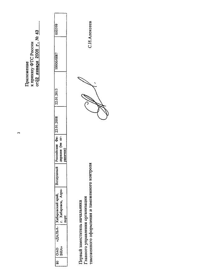 ПРИКАЗ ФТС РФ от 22.01.2008 N 43