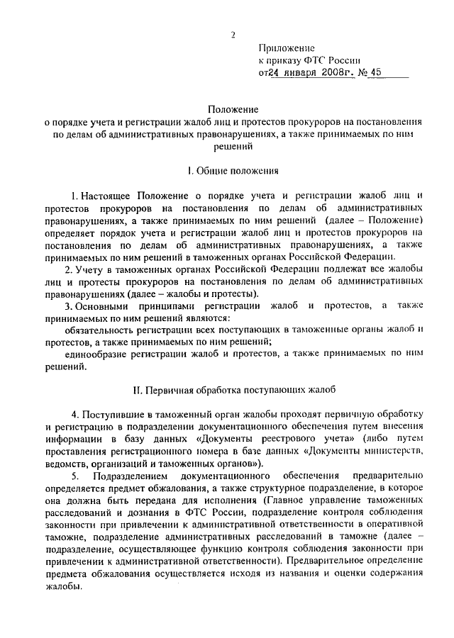 ПРИКАЗ ФТС РФ от 24.01.2008 N 45