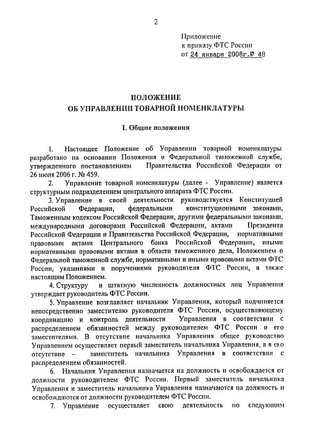 ПРИКАЗ ФТС РФ от 24.01.2008 N 48