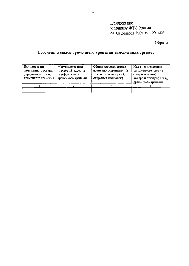 ПРИКАЗ ФТС РФ от 06.12.2007 N 1496