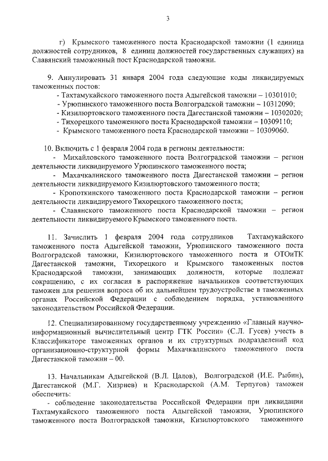 ПРИКАЗ ГТК РФ от 24.11.2003 N 1321