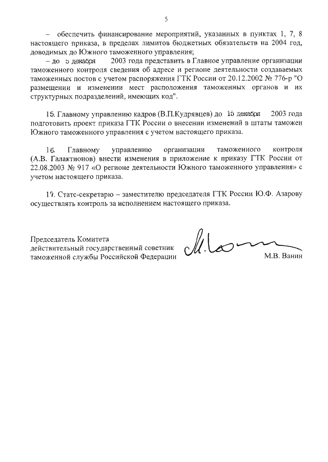 ПРИКАЗ ГТК РФ от 24.11.2003 N 1321