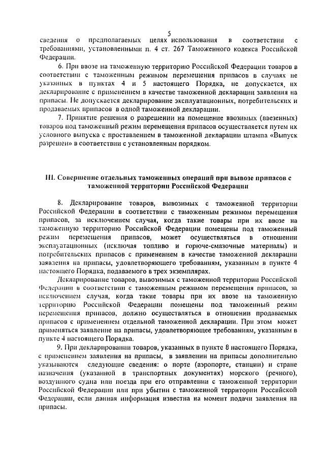 "ОБ УТВЕРЖДЕНИИ ПОРЯДКА СОВЕРШЕНИЯ ОТДЕЛЬНЫХ ТАМОЖЕННЫХ ОПЕРАЦИЙ ПРИ ИСПОЛЬЗОВАНИИ ТАМОЖЕННОГО РЕЖИМА ПЕРЕМЕЩЕНИЯ ПРИПАСОВ"