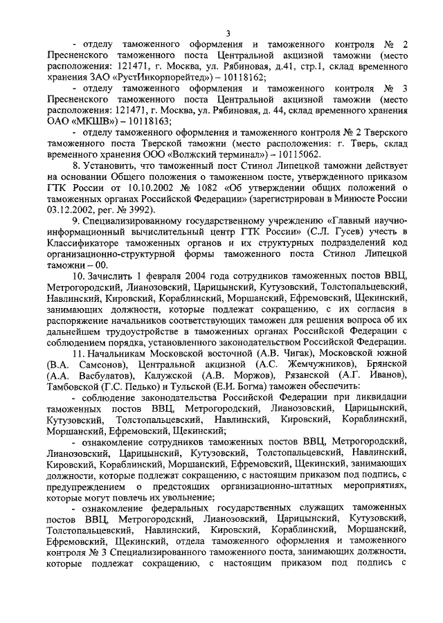 ПРИКАЗ ГТК РФ от 24.11.2003 N 1319