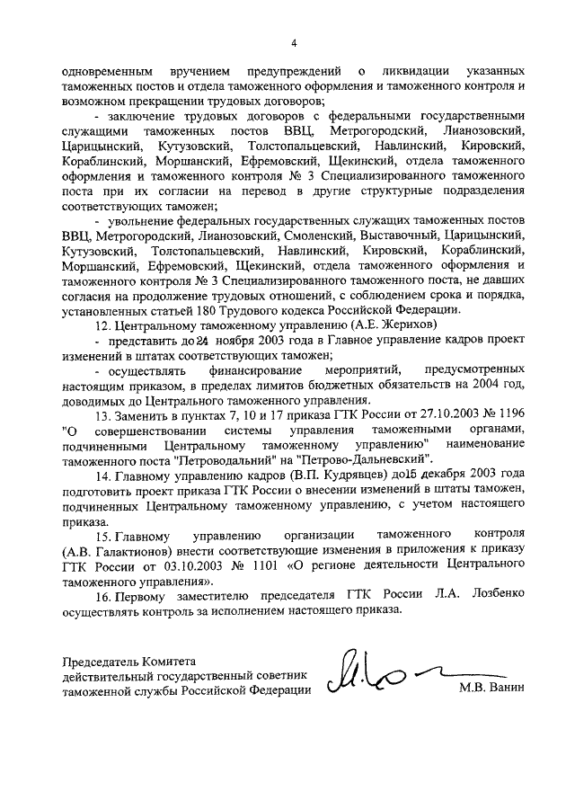 ПРИКАЗ ГТК РФ от 24.11.2003 N 1319