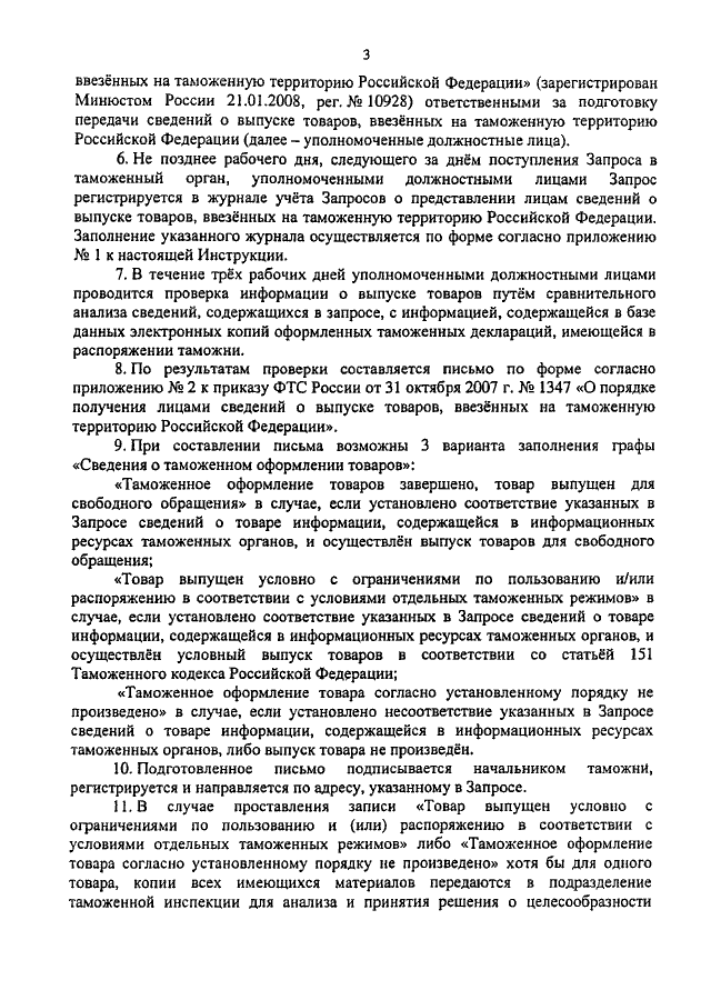 "ОБ УТВЕРЖДЕНИИ ИНСТРУКЦИИ О ПОРЯДКЕ ДЕЙСТВИЙ ДОЛЖНОСТНЫХ ЛИЦ ТАМОЖЕН ПРИ ПРЕДСТАВЛЕНИИ ЛИЦАМ СВЕДЕНИЙ О ВЫПУСКЕ ТОВАРОВ, ВВЕЗЕННЫХ НА ТАМОЖЕННУЮ ТЕРРИТОРИЮ РОССИЙСКОЙ ФЕДЕРАЦИИ"