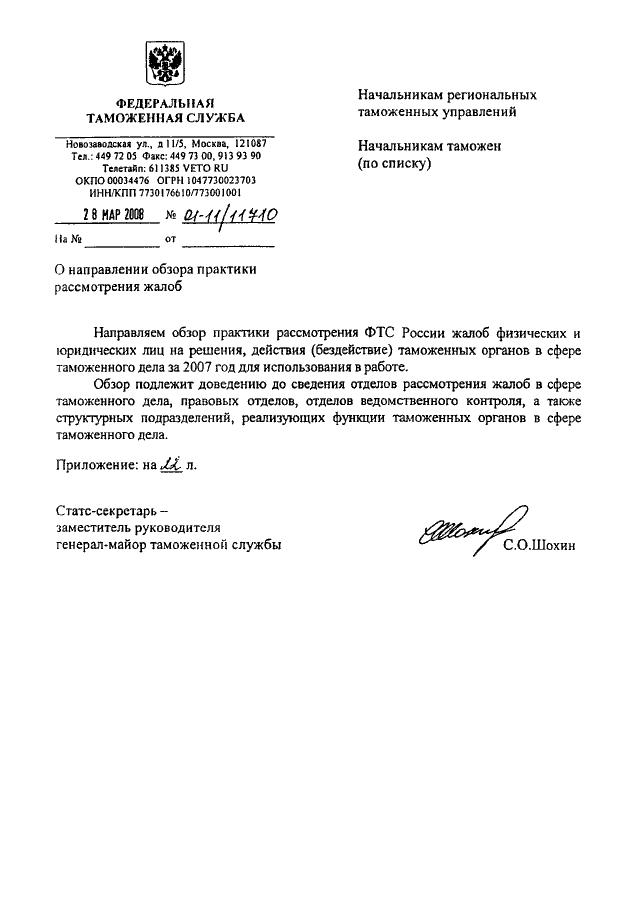 ПИСЬМО ФТС РФ от 28.03.2008 N 01-11/11710