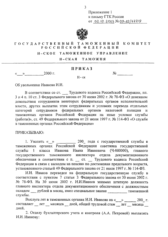 ПИСЬМО ГТК РФ от 02.12.2003 N 09-82/47219