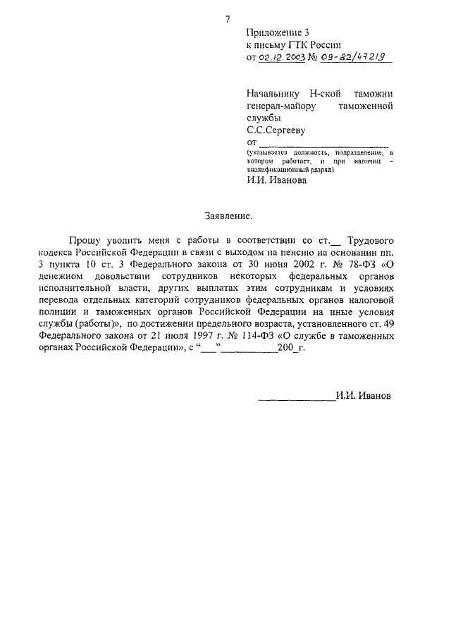 ПИСЬМО ГТК РФ от 02.12.2003 N 09-82/47219
