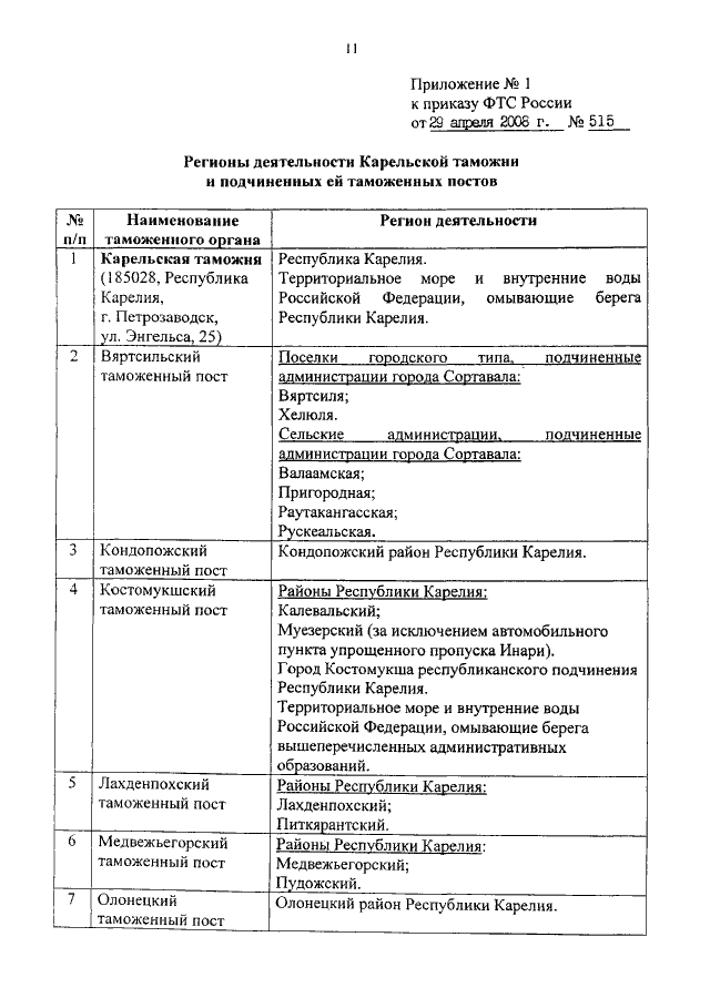 ПРИКАЗ ФТС РФ от 29.04.2008 N 515