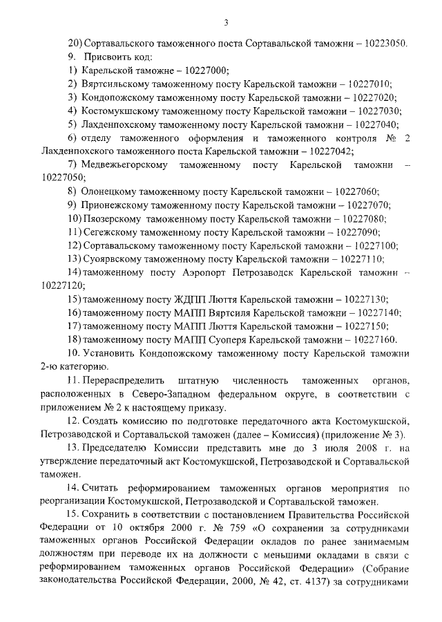 "О РЕОРГАНИЗАЦИИ ТАМОЖЕННЫХ ОРГАНОВ, РАСПОЛОЖЕННЫХ В РЕСПУБЛИКЕ КАРЕЛИЯ"