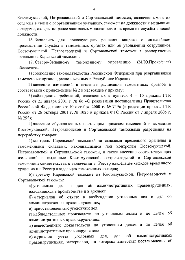 "О РЕОРГАНИЗАЦИИ ТАМОЖЕННЫХ ОРГАНОВ, РАСПОЛОЖЕННЫХ В РЕСПУБЛИКЕ КАРЕЛИЯ"