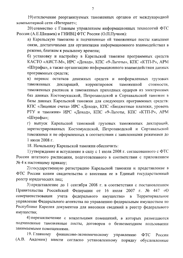 "О РЕОРГАНИЗАЦИИ ТАМОЖЕННЫХ ОРГАНОВ, РАСПОЛОЖЕННЫХ В РЕСПУБЛИКЕ КАРЕЛИЯ"