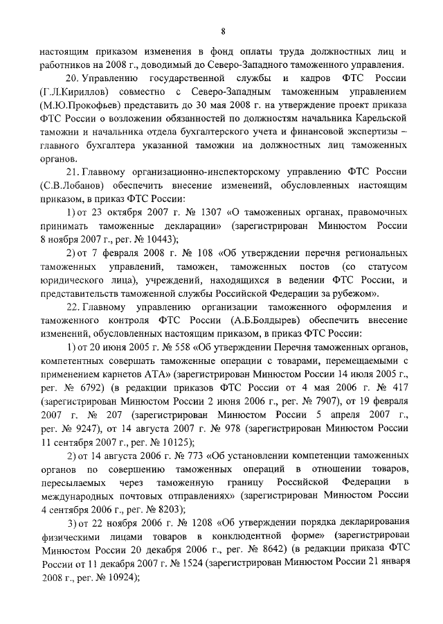 ПРИКАЗ ФТС РФ от 29.04.2008 N 515