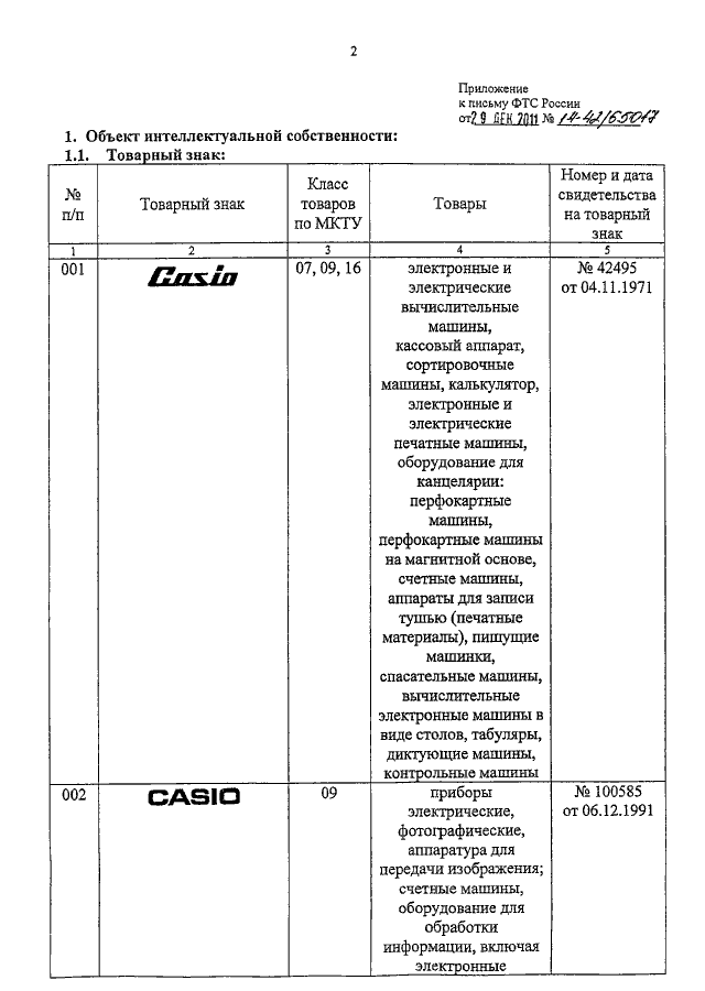 "О ТОВАРНЫХ ЗНАКАХ "CASIO"