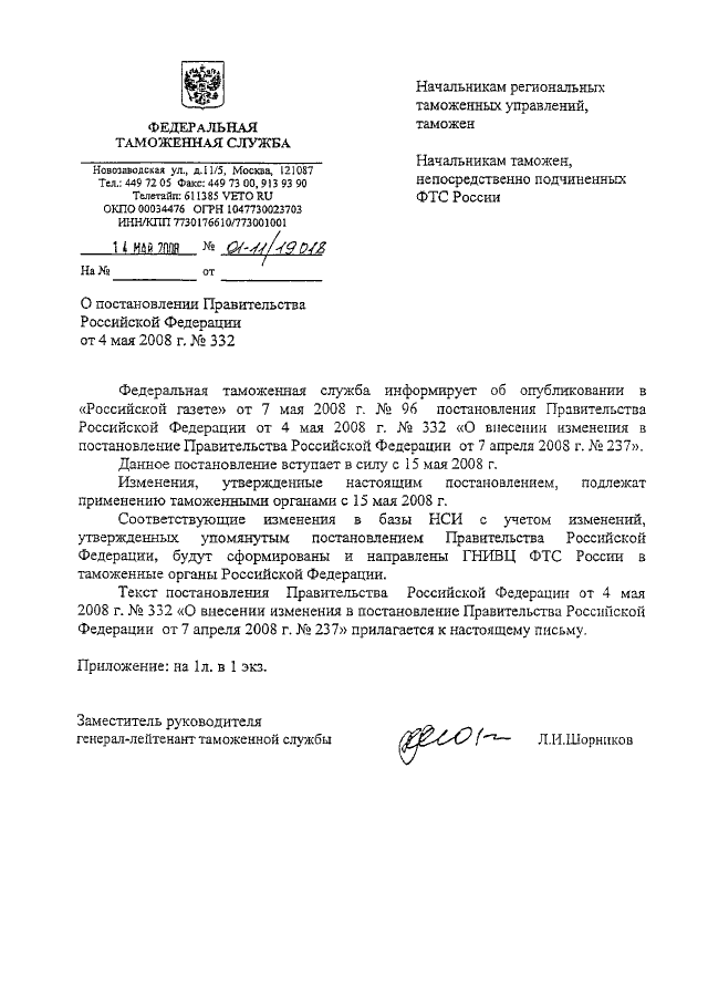 "О ПОСТАНОВЛЕНИИ ПРАВИТЕЛЬСТВА РОССИЙСКОЙ ФЕДЕРАЦИИ ОТ 4 МАЯ 2008 Г. N 332"
