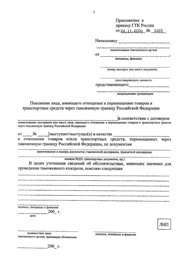 ПРИКАЗ ГТК РФ от 24.11.2003 N 1323