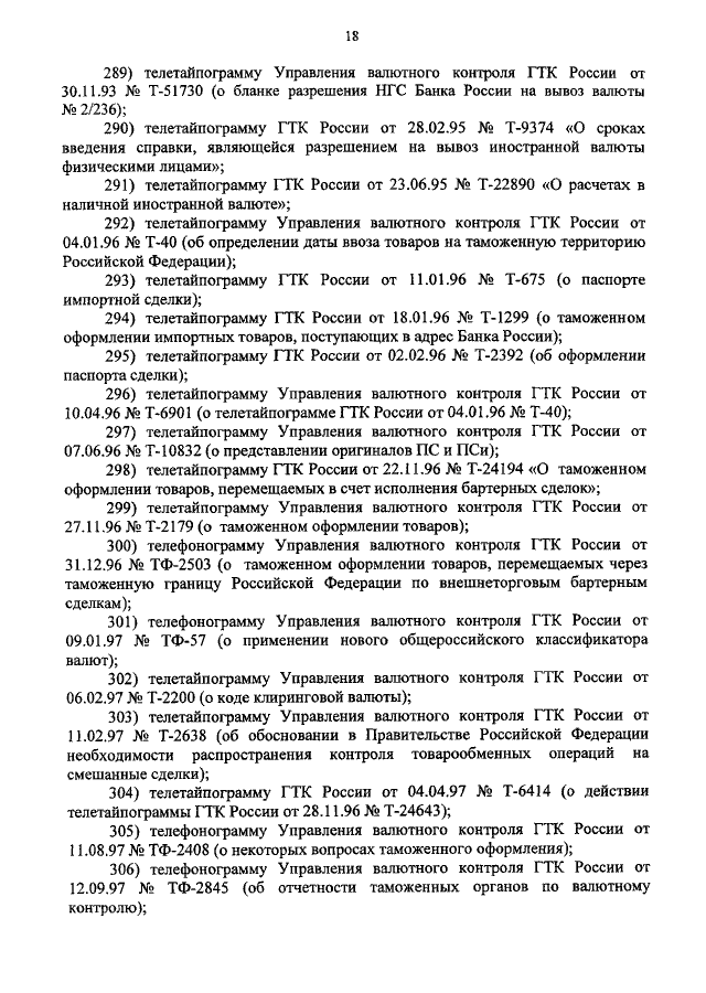 "О ПРИЗНАНИИ УТРАТИВШИМИ СИЛУ ПРАВОВЫХ АКТОВ ГТК РОССИИ ПО ВОПРОСАМ ВАЛЮТНОГО КОНТРОЛЯ"