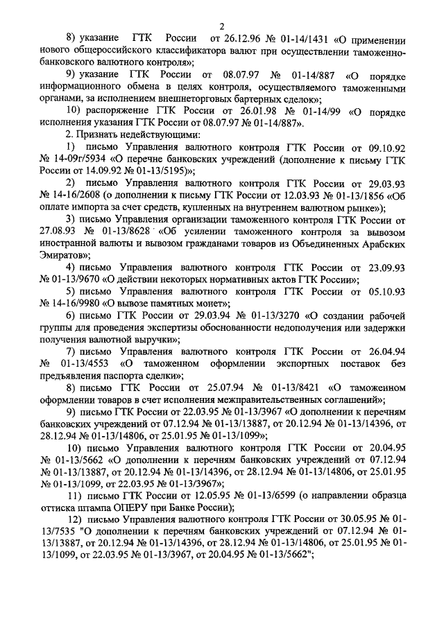 "О ПРИЗНАНИИ УТРАТИВШИМИ СИЛУ ПРАВОВЫХ АКТОВ ГТК РОССИИ ПО ВОПРОСАМ ВАЛЮТНОГО КОНТРОЛЯ"