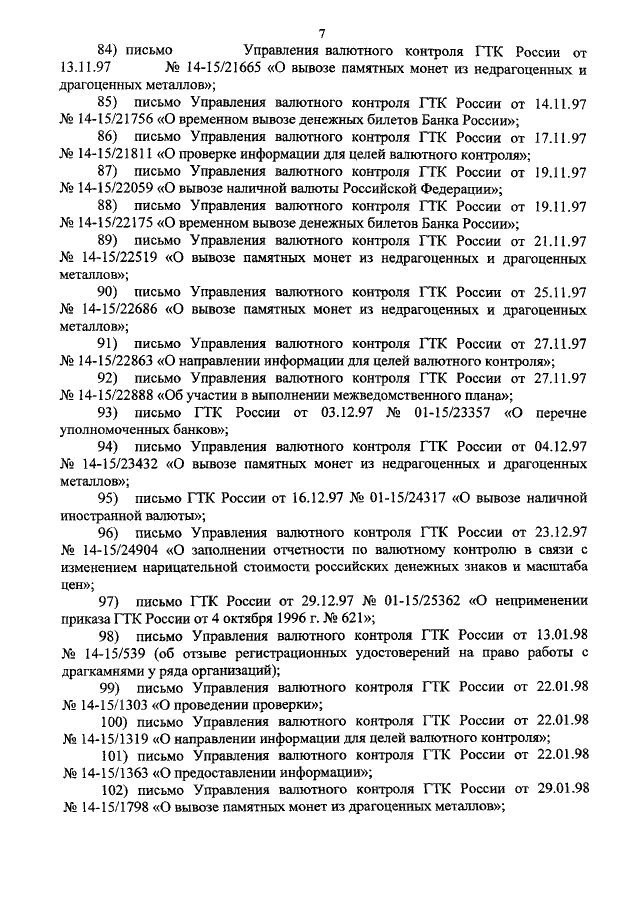 "О ПРИЗНАНИИ УТРАТИВШИМИ СИЛУ ПРАВОВЫХ АКТОВ ГТК РОССИИ ПО ВОПРОСАМ ВАЛЮТНОГО КОНТРОЛЯ"