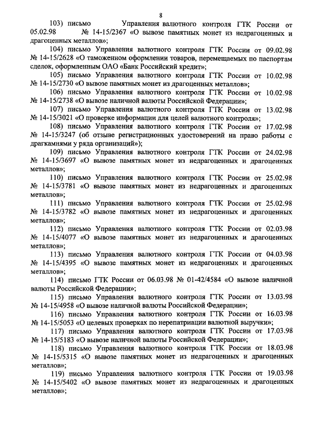 "О ПРИЗНАНИИ УТРАТИВШИМИ СИЛУ ПРАВОВЫХ АКТОВ ГТК РОССИИ ПО ВОПРОСАМ ВАЛЮТНОГО КОНТРОЛЯ"