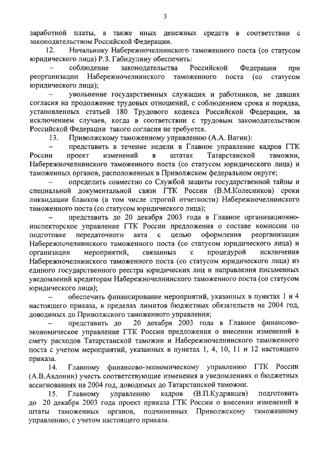 "О РЕОРГАНИЗАЦИИ НАБЕРЕЖНОЧЕЛНИНСКОГО ТАМОЖЕННОГО ПОСТА (СО СТАТУСОМ ЮРИДИЧЕСКОГО ЛИЦА)"
