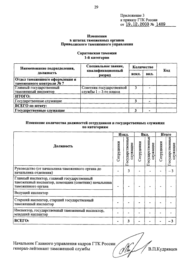 ПРИКАЗ ГТК РФ от 19.12.2003 N 1489