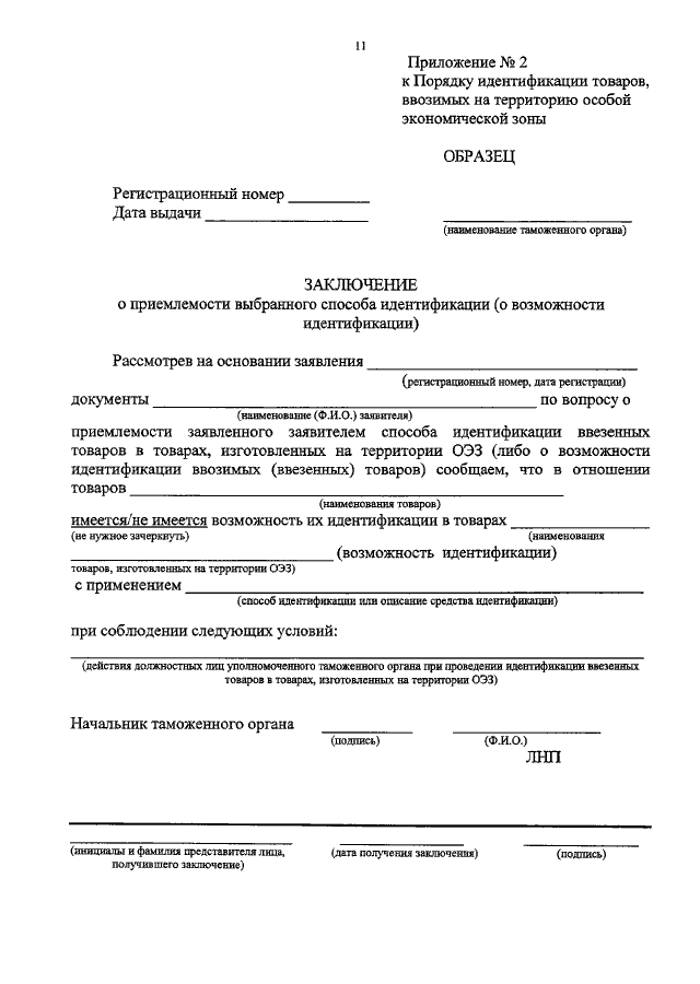"ОБ УТВЕРЖДЕНИИ ПОРЯДКА ИДЕНТИФИКАЦИИ ТОВАРОВ, ВВОЗИМЫХ НА ТЕРРИТОРИЮ ОСОБОЙ ЭКОНОМИЧЕСКОЙ ЗОНЫ"