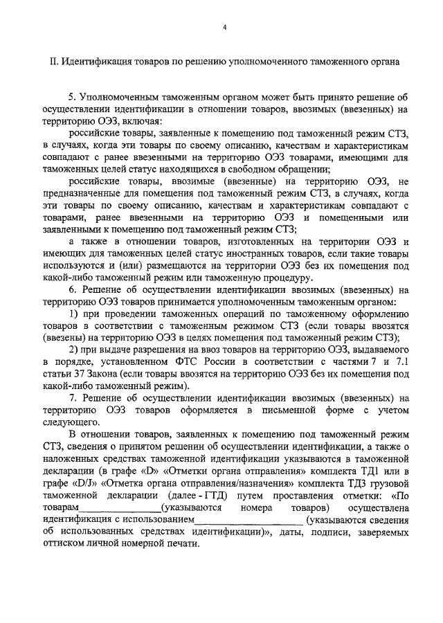 "ОБ УТВЕРЖДЕНИИ ПОРЯДКА ИДЕНТИФИКАЦИИ ТОВАРОВ, ВВОЗИМЫХ НА ТЕРРИТОРИЮ ОСОБОЙ ЭКОНОМИЧЕСКОЙ ЗОНЫ"