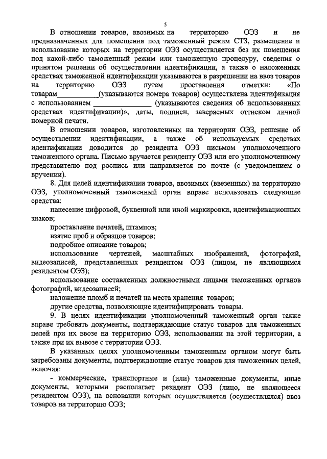 "ОБ УТВЕРЖДЕНИИ ПОРЯДКА ИДЕНТИФИКАЦИИ ТОВАРОВ, ВВОЗИМЫХ НА ТЕРРИТОРИЮ ОСОБОЙ ЭКОНОМИЧЕСКОЙ ЗОНЫ"