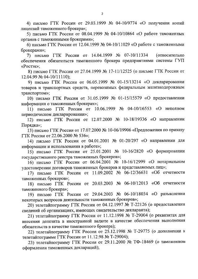 ПРИКАЗ ГТК РФ от 24.12.2003 N 1531