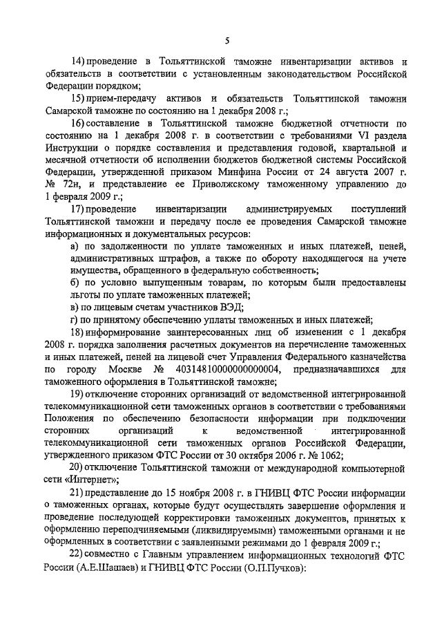 "О РЕОРГАНИЗАЦИИ САМАРСКОЙ И ТОЛЬЯТТИНСКОЙ ТАМОЖЕН"