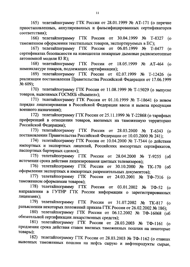 ПРИКАЗ ГТК РФ от 30.12.2003 N 1581