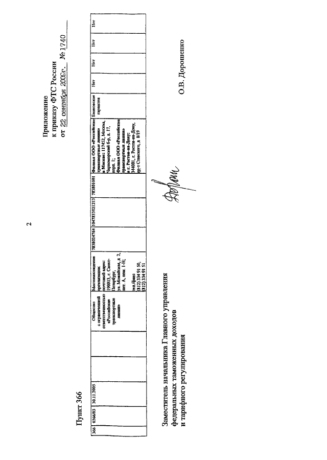 ПРИКАЗ ФТС РФ от 22.09.2009 N 1740
