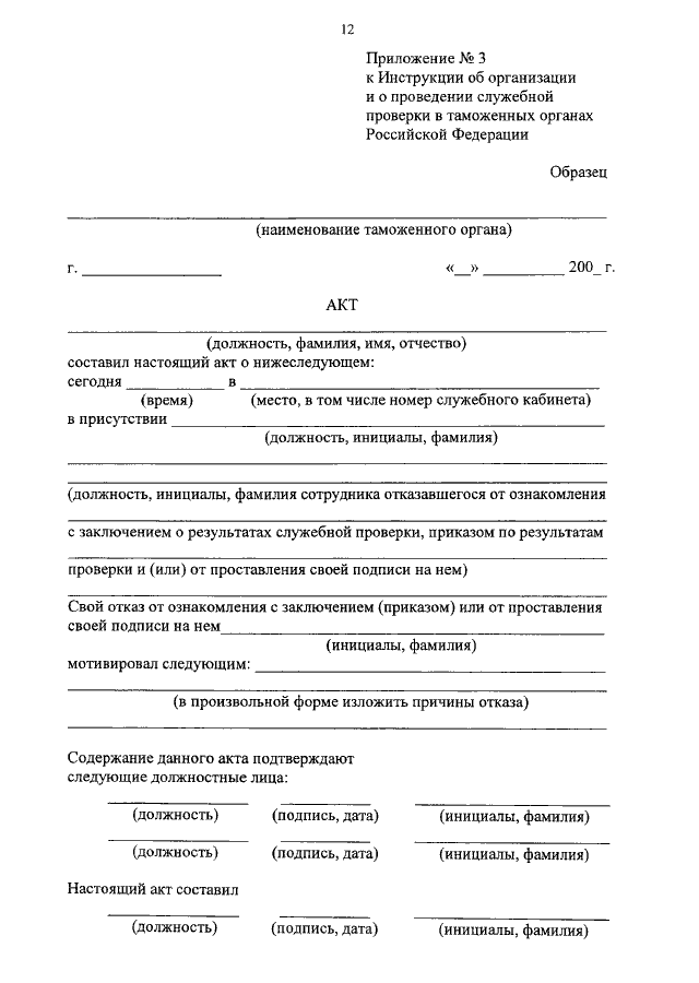 "ОБ УТВЕРЖДЕНИИ ИНСТРУКЦИИ ОБ ОРГАНИЗАЦИИ И О ПРОВЕДЕНИИ СЛУЖЕБНОЙ ПРОВЕРКИ В ТАМОЖЕННЫХ ОРГАНАХ РОССИЙСКОЙ ФЕДЕРАЦИИ"