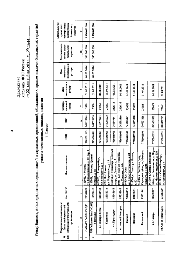 ПРИКАЗ ФТС РФ от 02.09.2013 N 1644