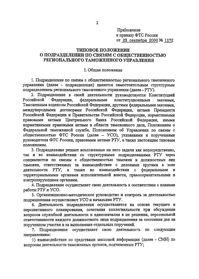 ПРИКАЗ ФТС РФ от 23.09.2008 N 1172