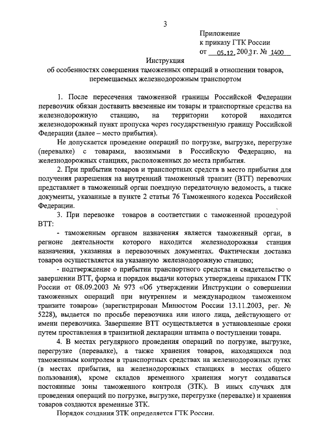 ПРИКАЗ ГТК РФ от 05.12.2003 N 1400