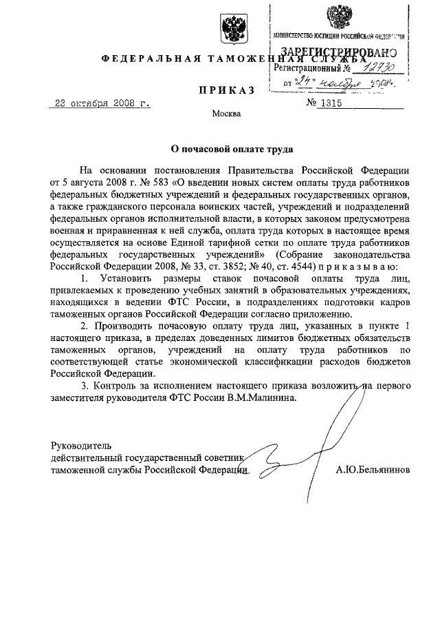 ПРИКАЗ ФТС РФ от 23.10.2008 N 1315