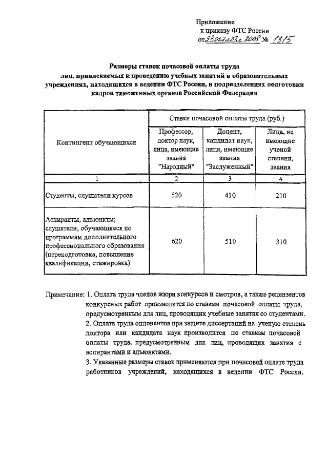 ПРИКАЗ ФТС РФ от 23.10.2008 N 1315
