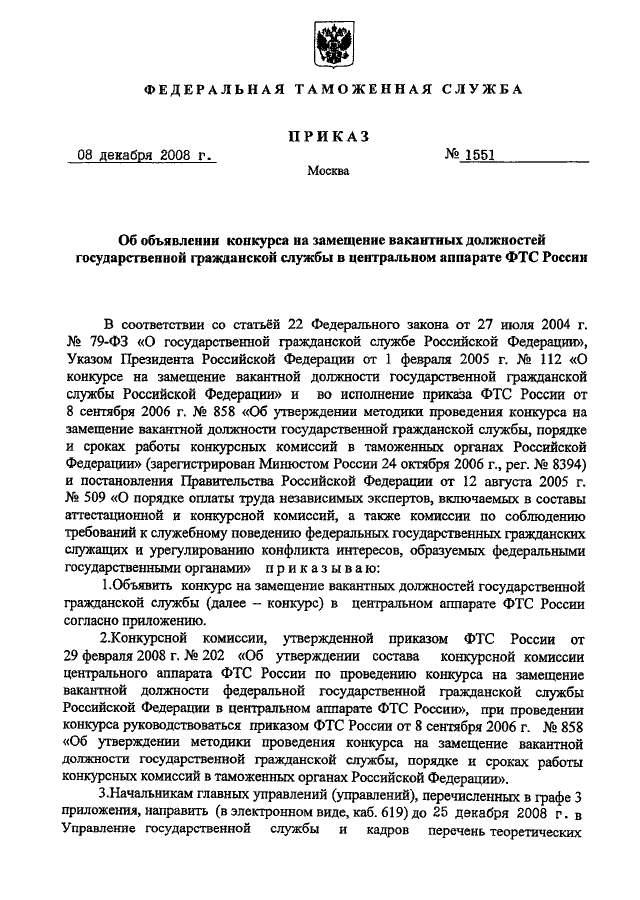 ПРИКАЗ ФТС РФ от 08.12.2008 N 1551