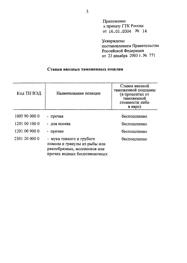 ПРИКАЗ ГТК РФ от 16.01.2004 N 14
